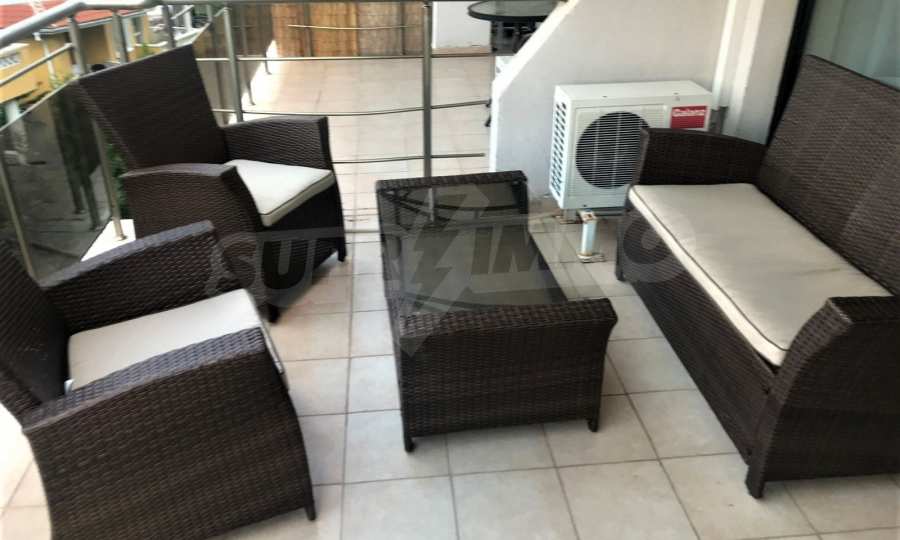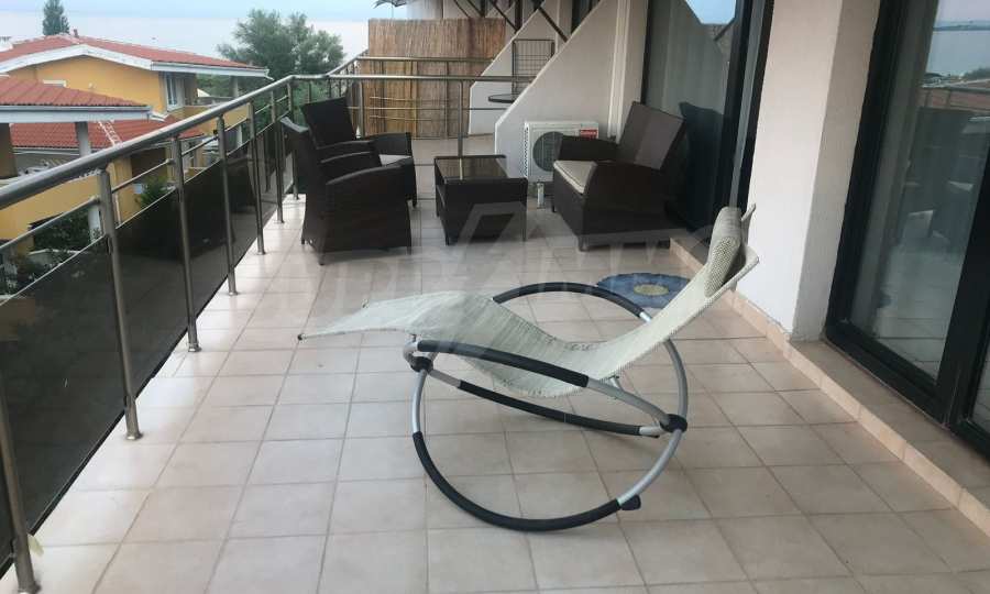 Разпределението е практично: всекидневна с напълно оборудвана кухненска част, уютна спалня, баня, входно антре, просторна тераса с гледка към морето.