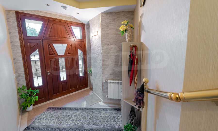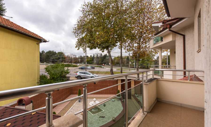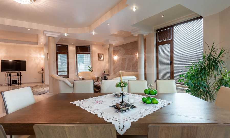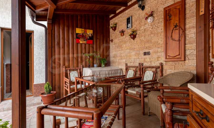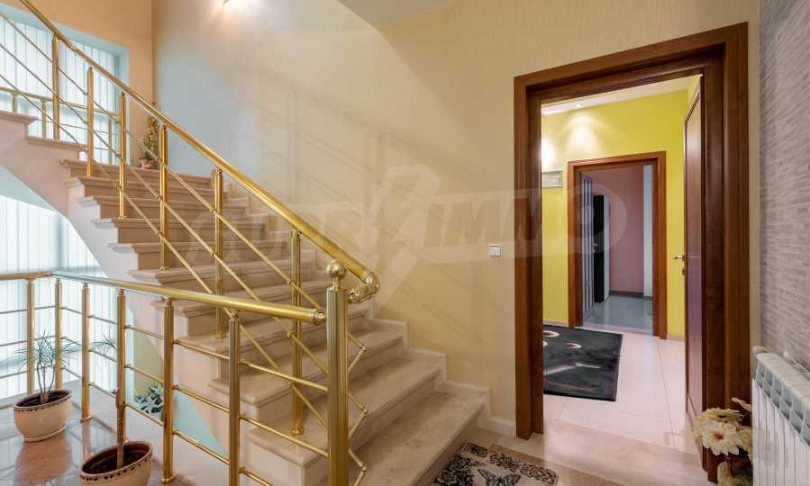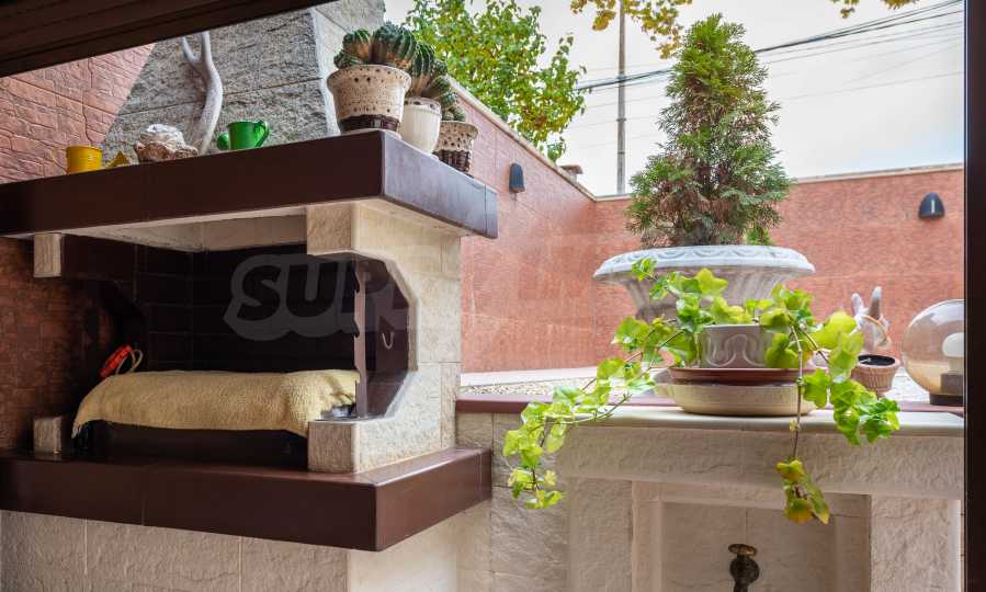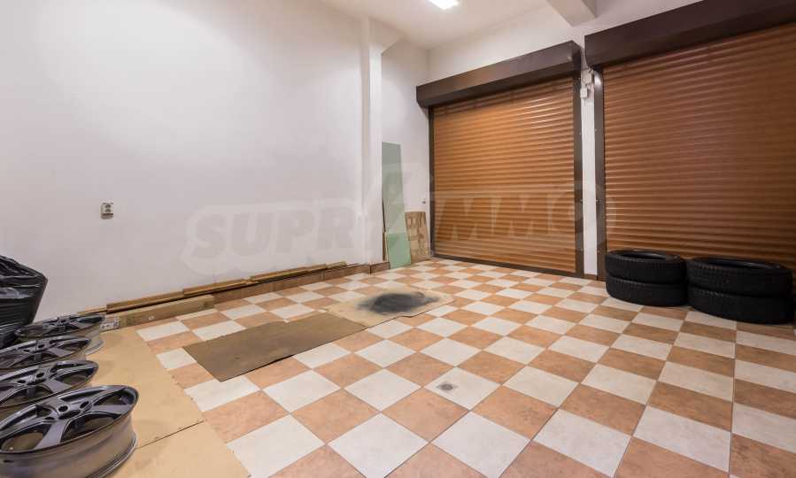 Имотът включва: РЗП 520 кв.м - къща, собствен двор 100 кв.м, гараж за два автомобила - 56 кв.м, магазин на приземен етаж от 110 кв.м.