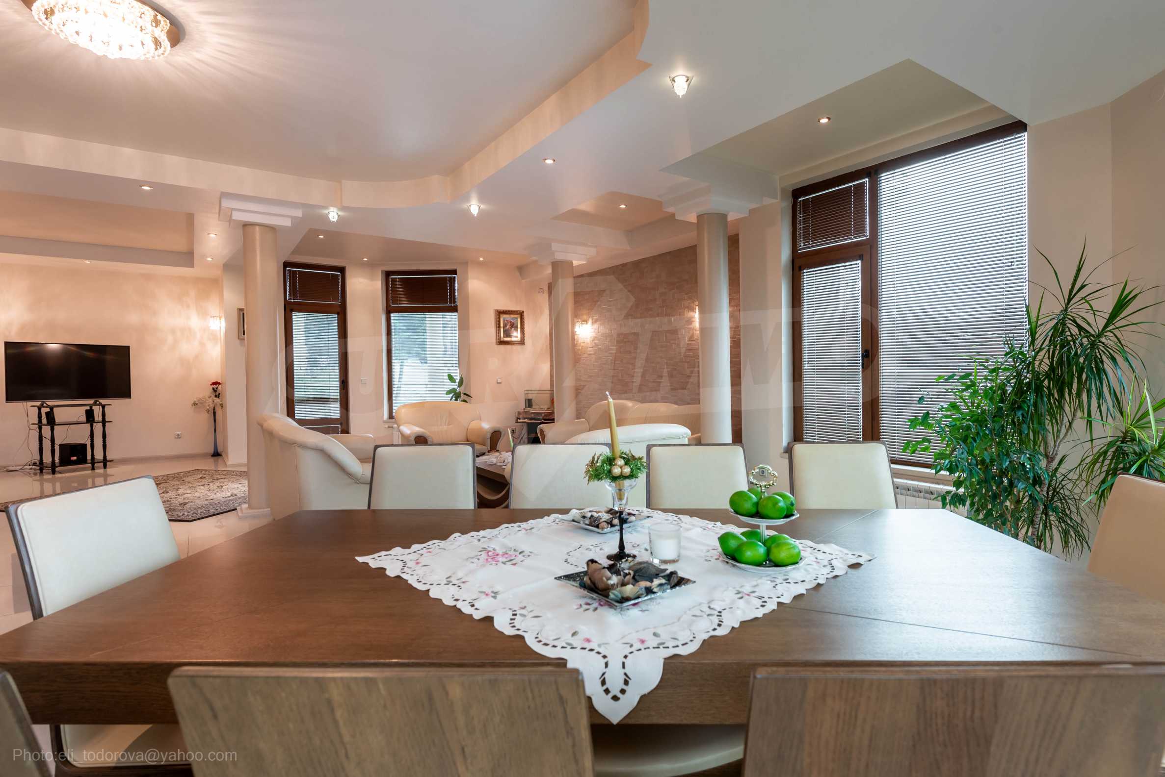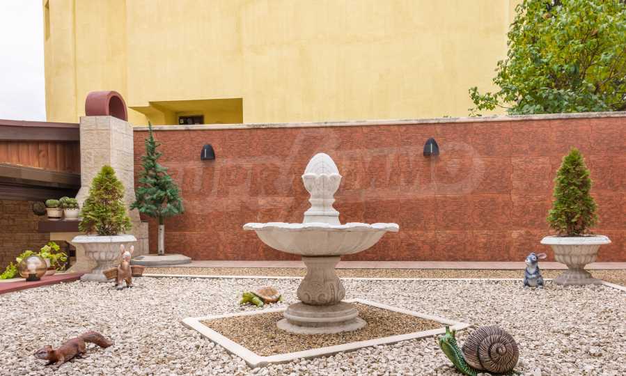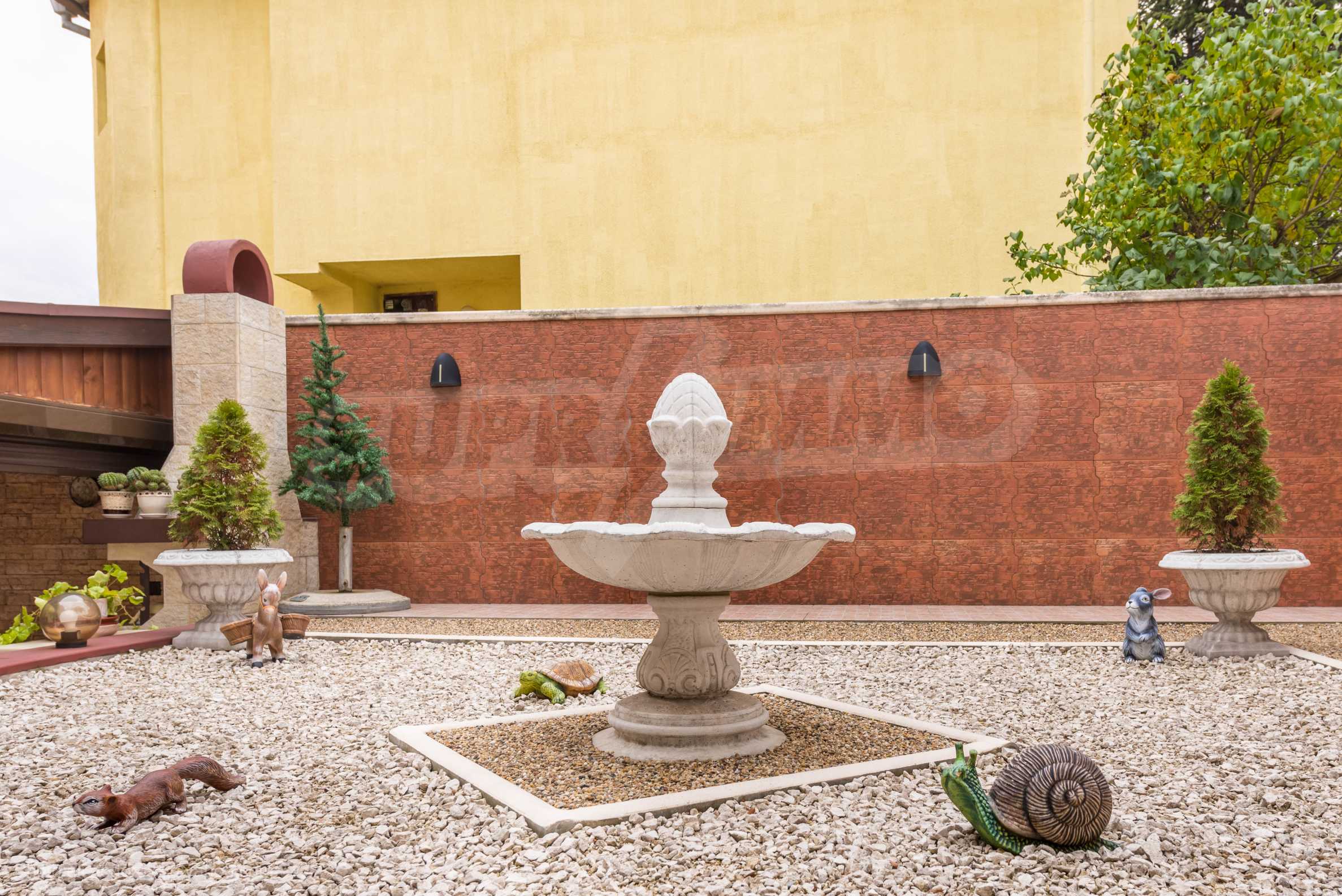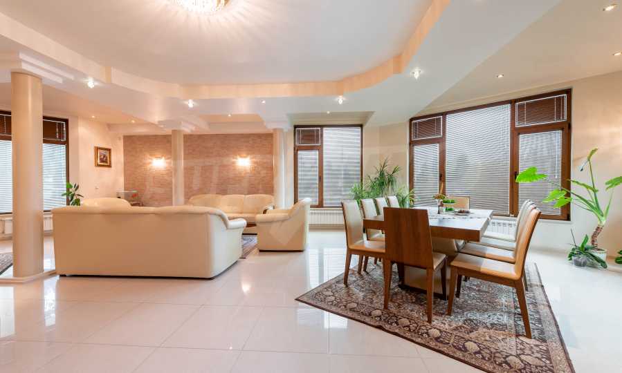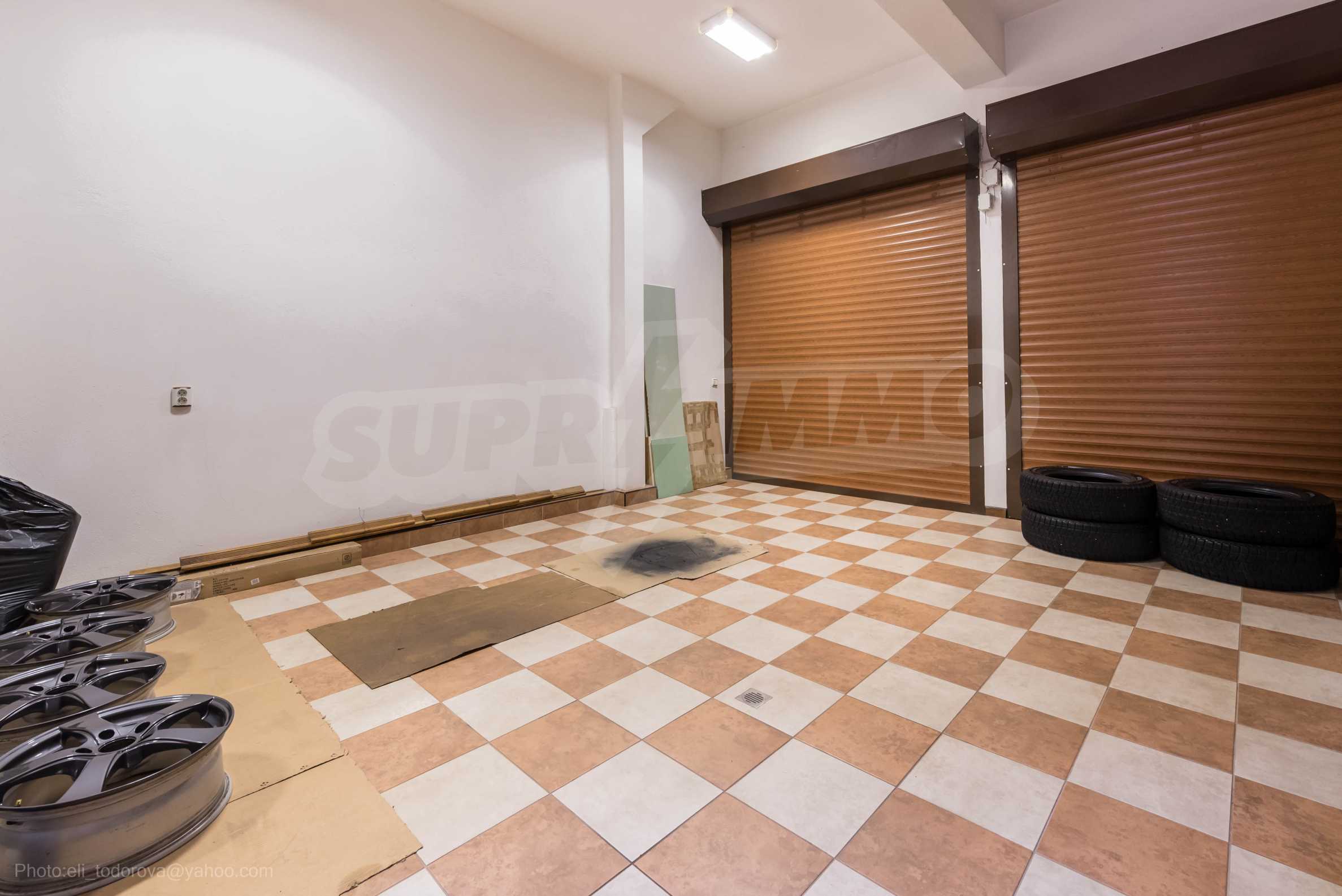 Имотът включва: РЗП 520 кв.м - къща, собствен двор 100 кв.м, гараж за два автомобила - 56 кв.м, магазин на приземен етаж от 110 кв.м.