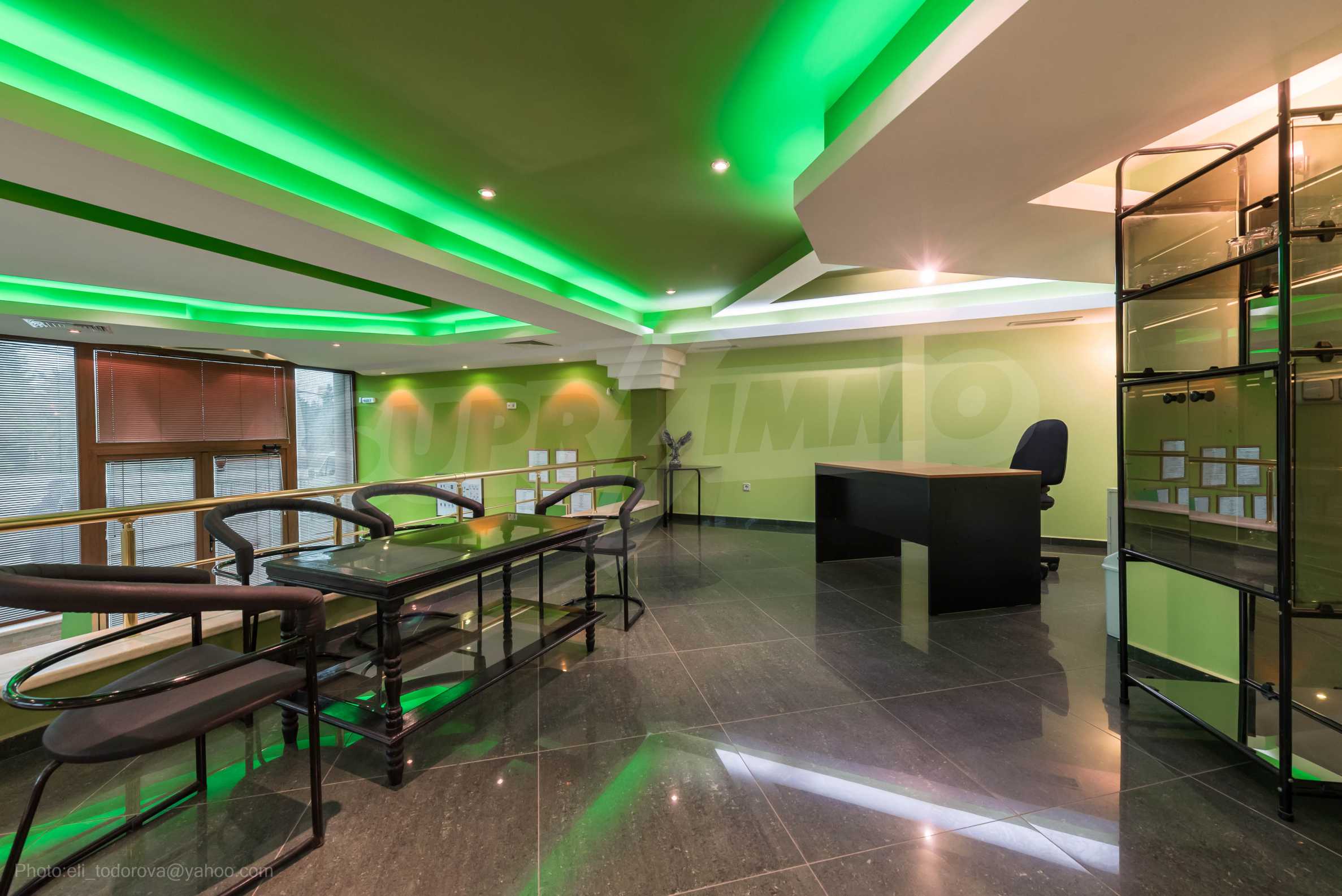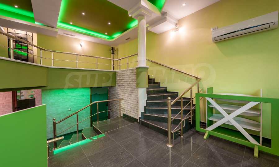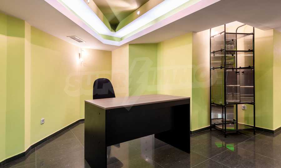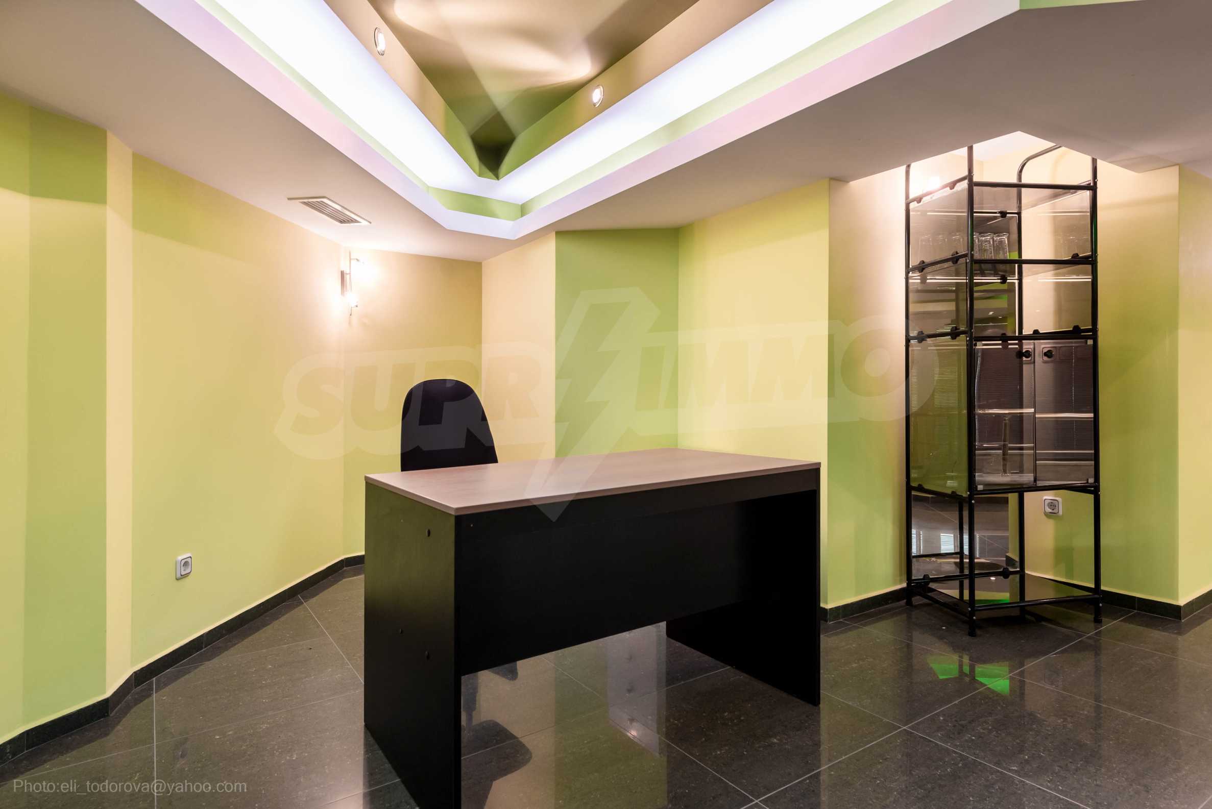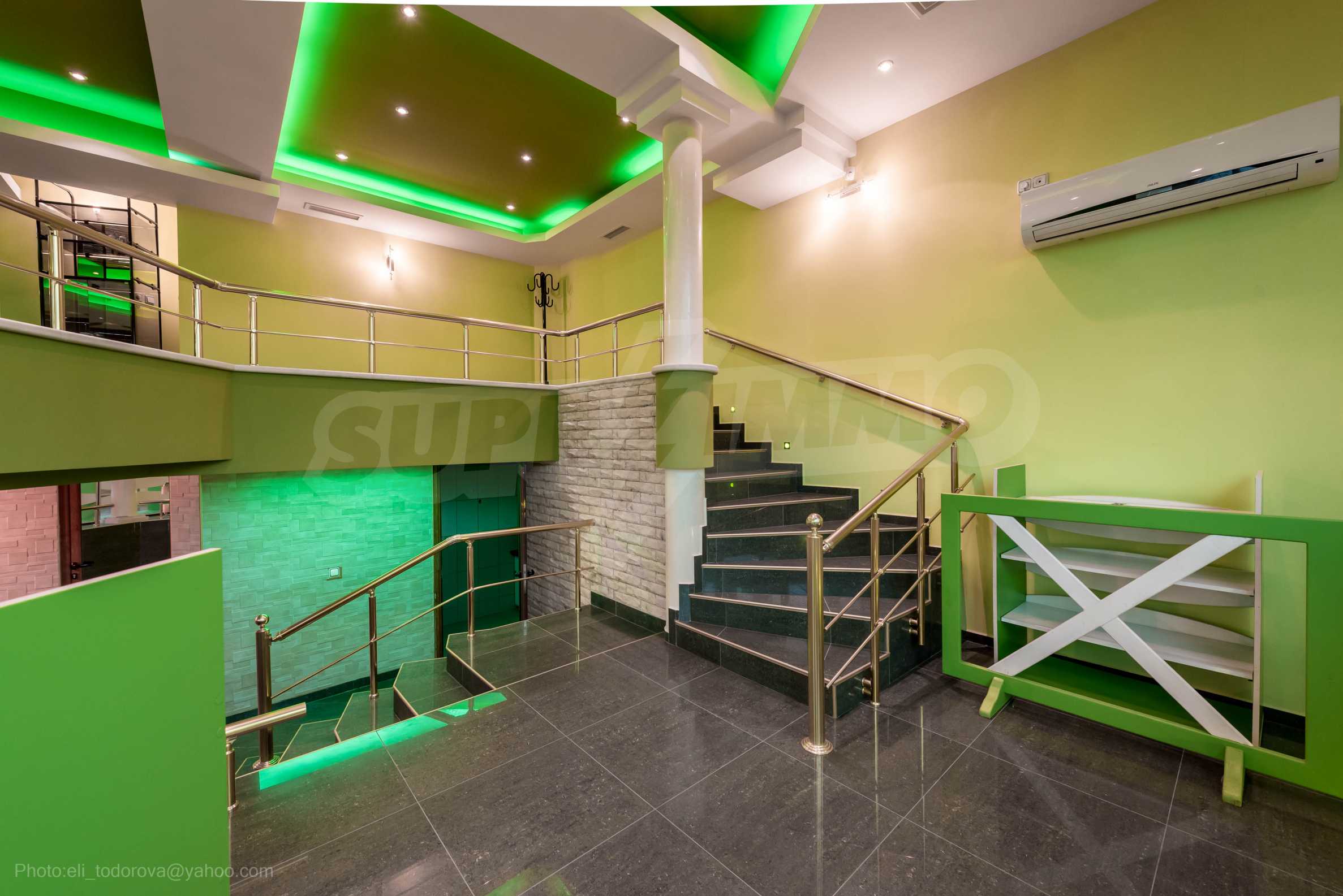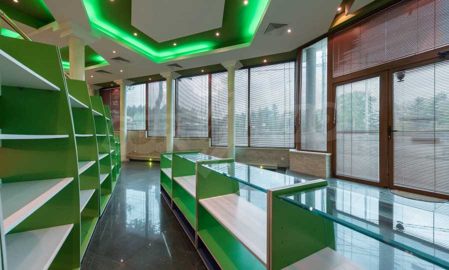 Магазинът е с отделен електромер и трифазен ток, и в момента има наематели. На снимковия материал към офертата, имате възможност да разгледате ефектен модерен интериор, избран за търговското помещение: качествени настилки с плочки, терасирани пространства, вградено осветление в зелен цвят, зелени акценти и в мебелите и стените, просторни делови зони с изобилие от светлина и модерно оборудване, климатизация и вентилация.