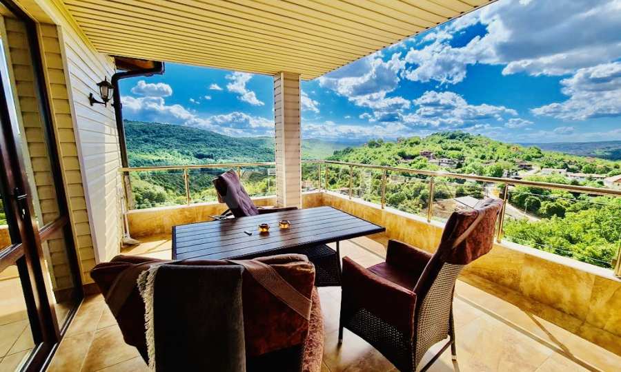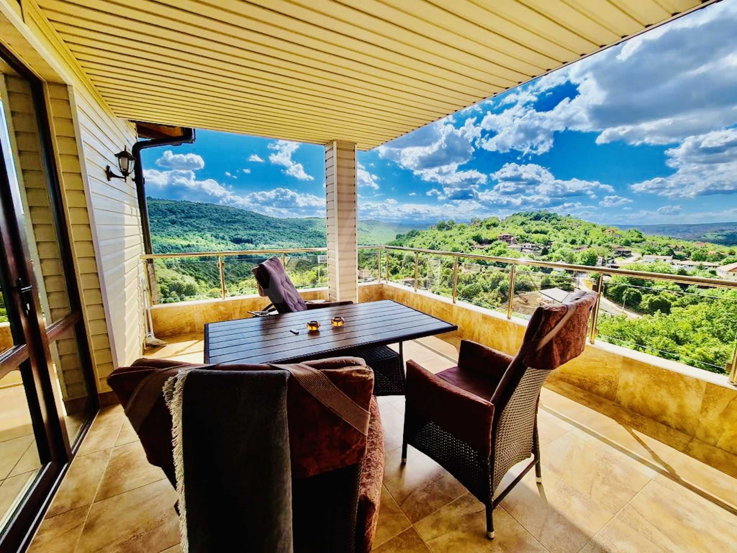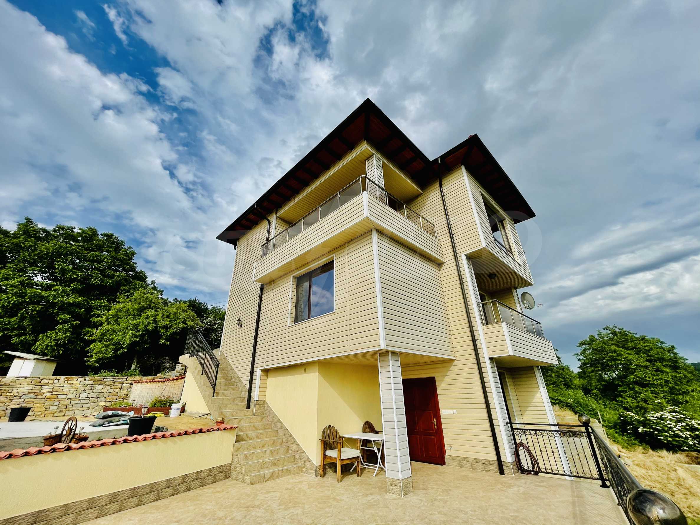 Представяме за продажба луксозно обзаведена масивна къща на три етажа с красива панорамна гледка, на 5 км от гр. Велико Търново. Разположена е във високата част на селото откъдето се разкрива чудесна панорама към град Велико Търново и отсрещния прекрасен хълм.