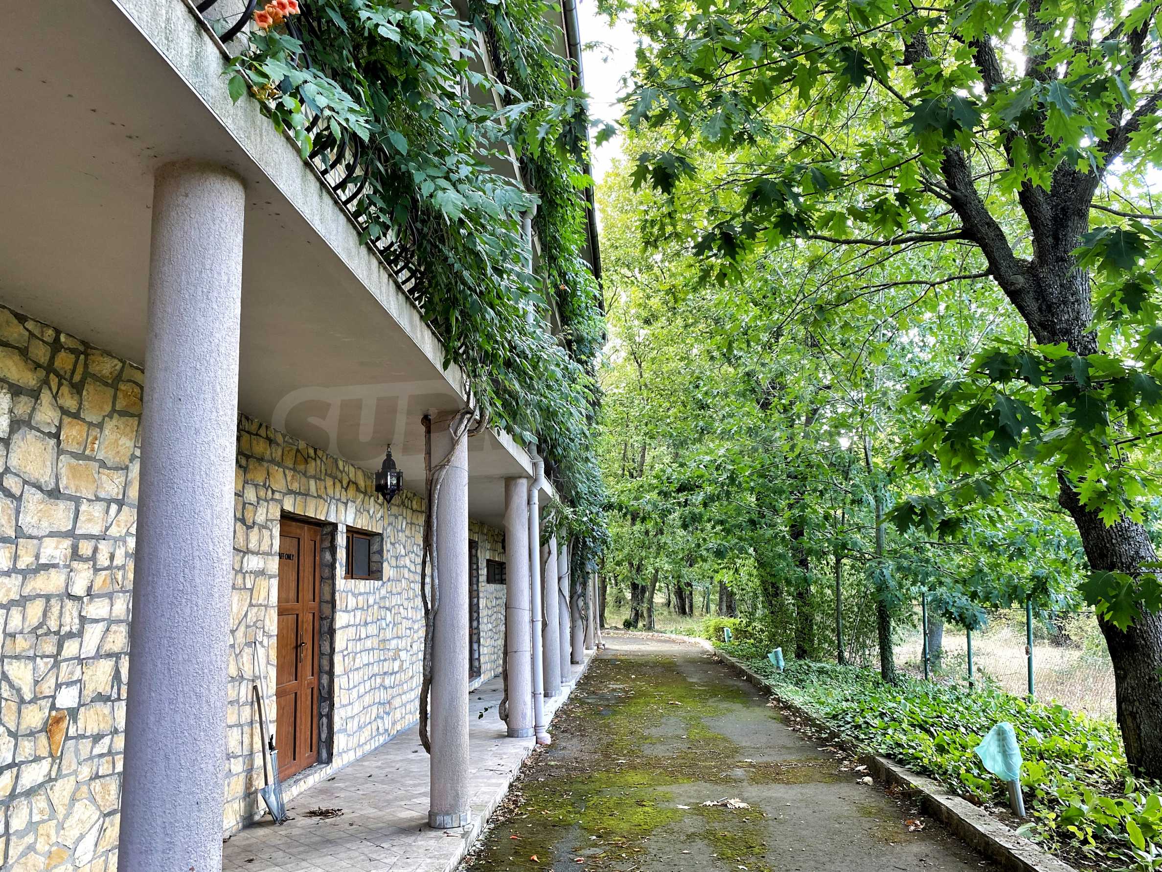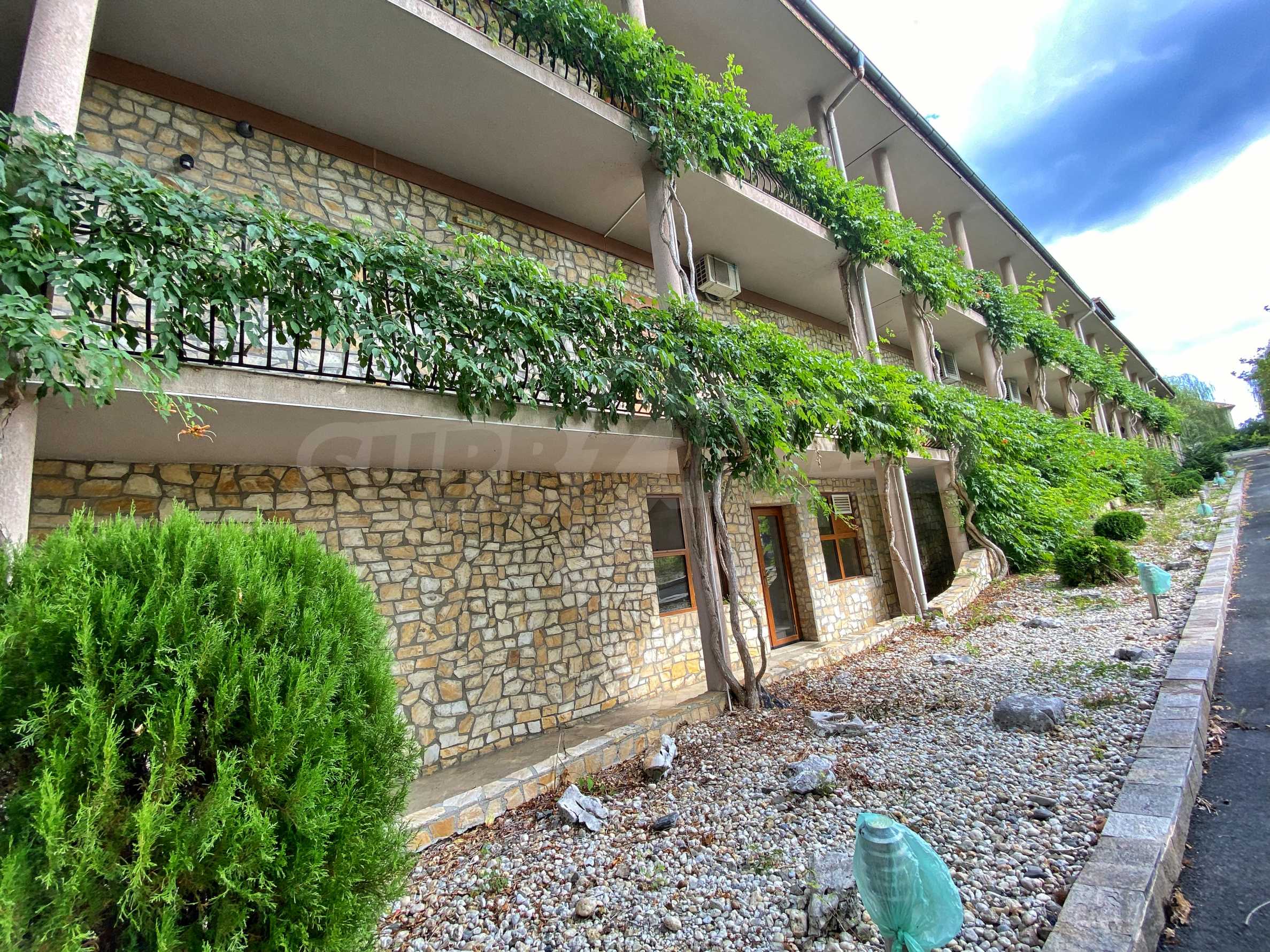 - фасадните стени са с естествени каменни плочи;