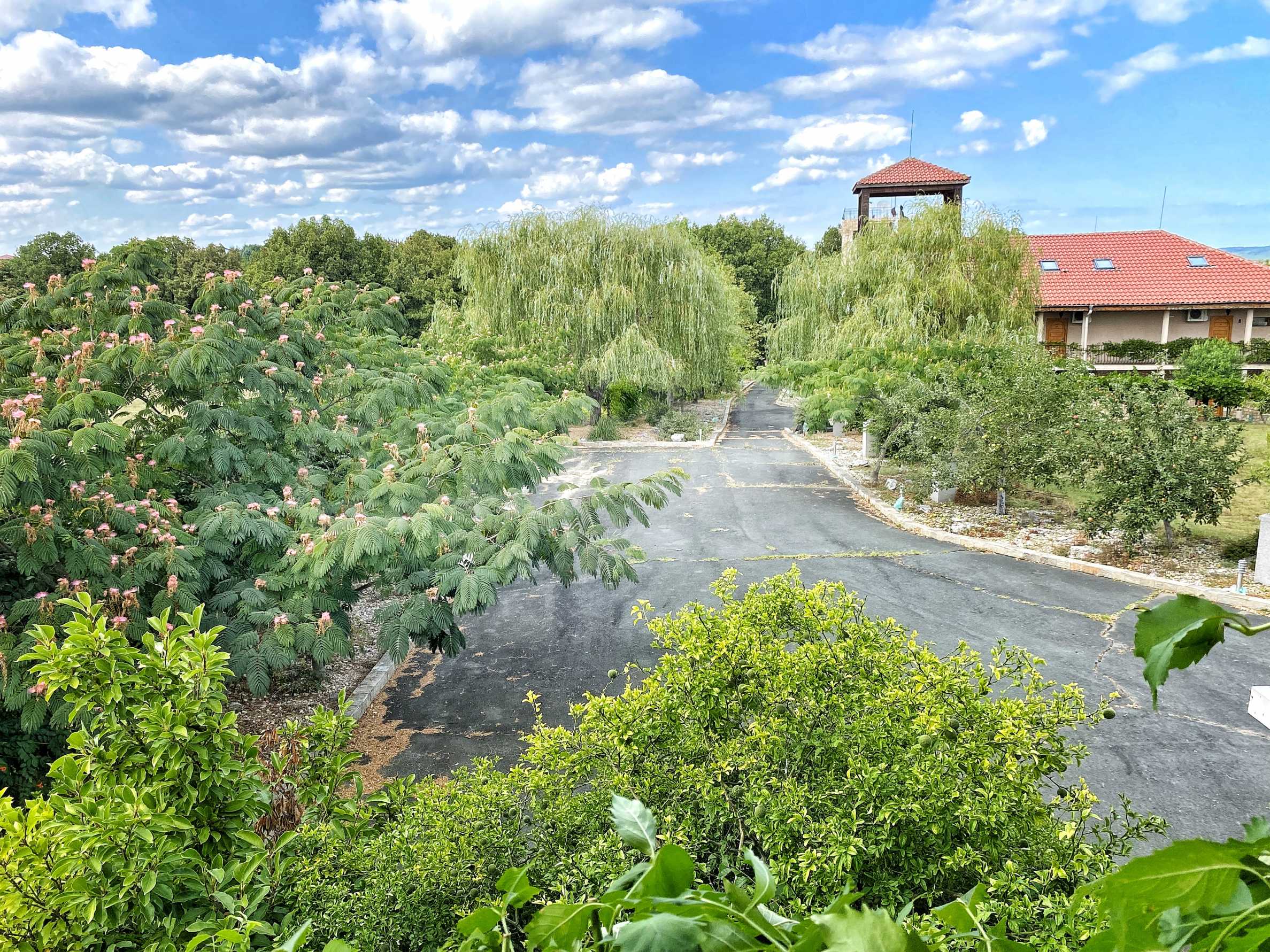 Хотелът има собствени асфалтирани пътища, частен паркинг с капацитет за 14 автомобили, което осигурява безпроблемен достъп и решението с паркирането както и за по-големи групи, които ползват конферентната зала или при сватбените тържества, йога ретрити или уъркшопи.