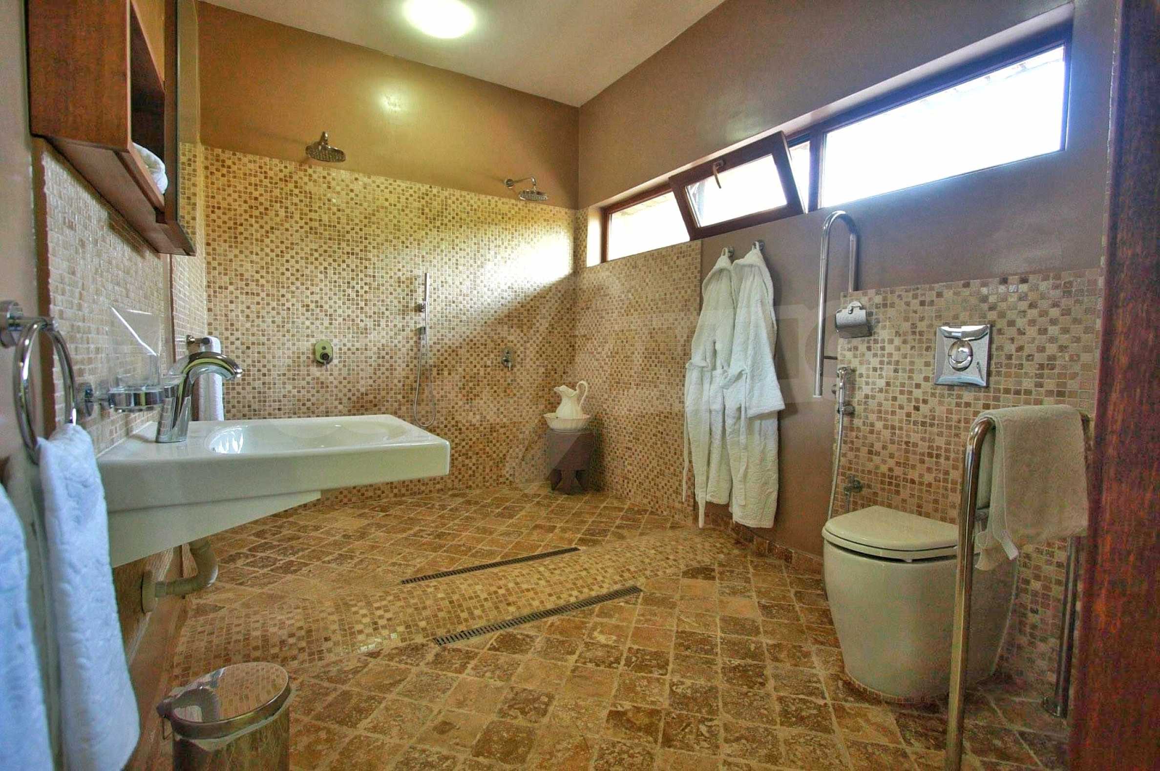 - соларни панели - слънчевата енергията се използва за затопляне на водата на душовете и плувния басейн.