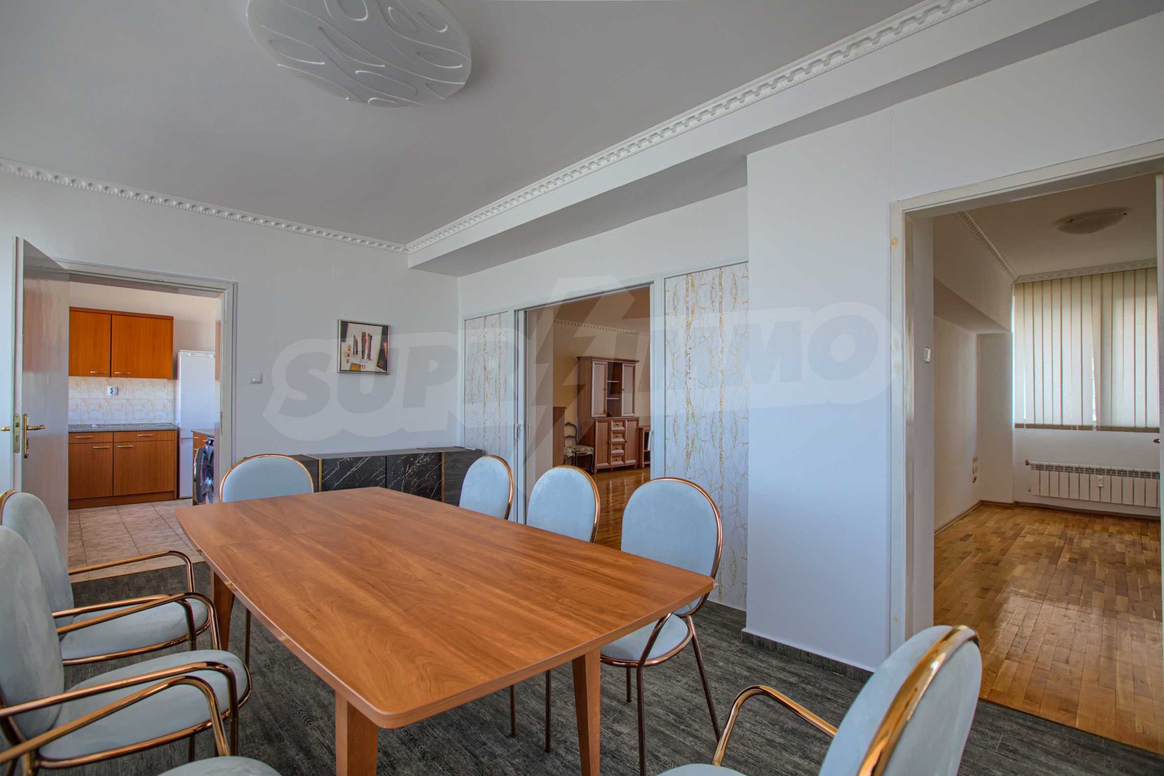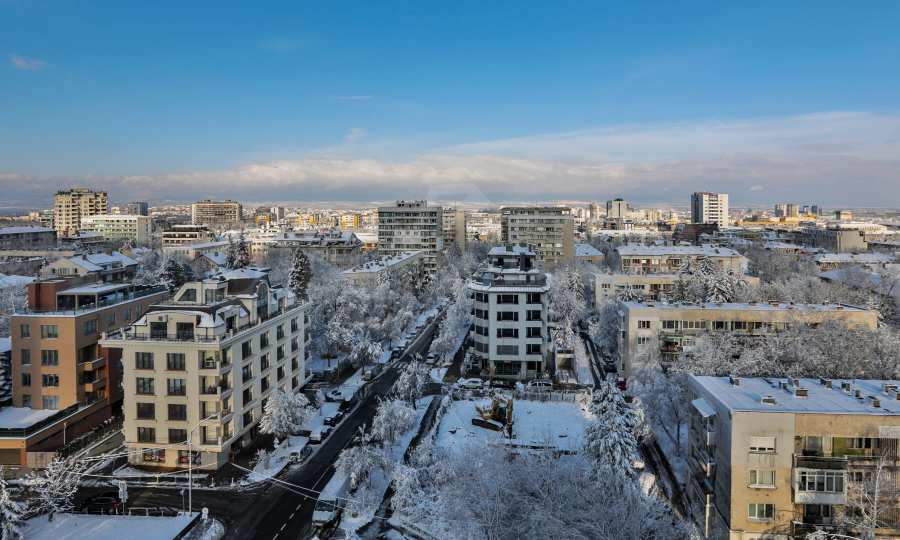 Жилището е светло и просторно със следното разпределение: антре, хол, трапезария, тераса с красива гледка, две спални, баня, тоалетна за гости и кабинет.