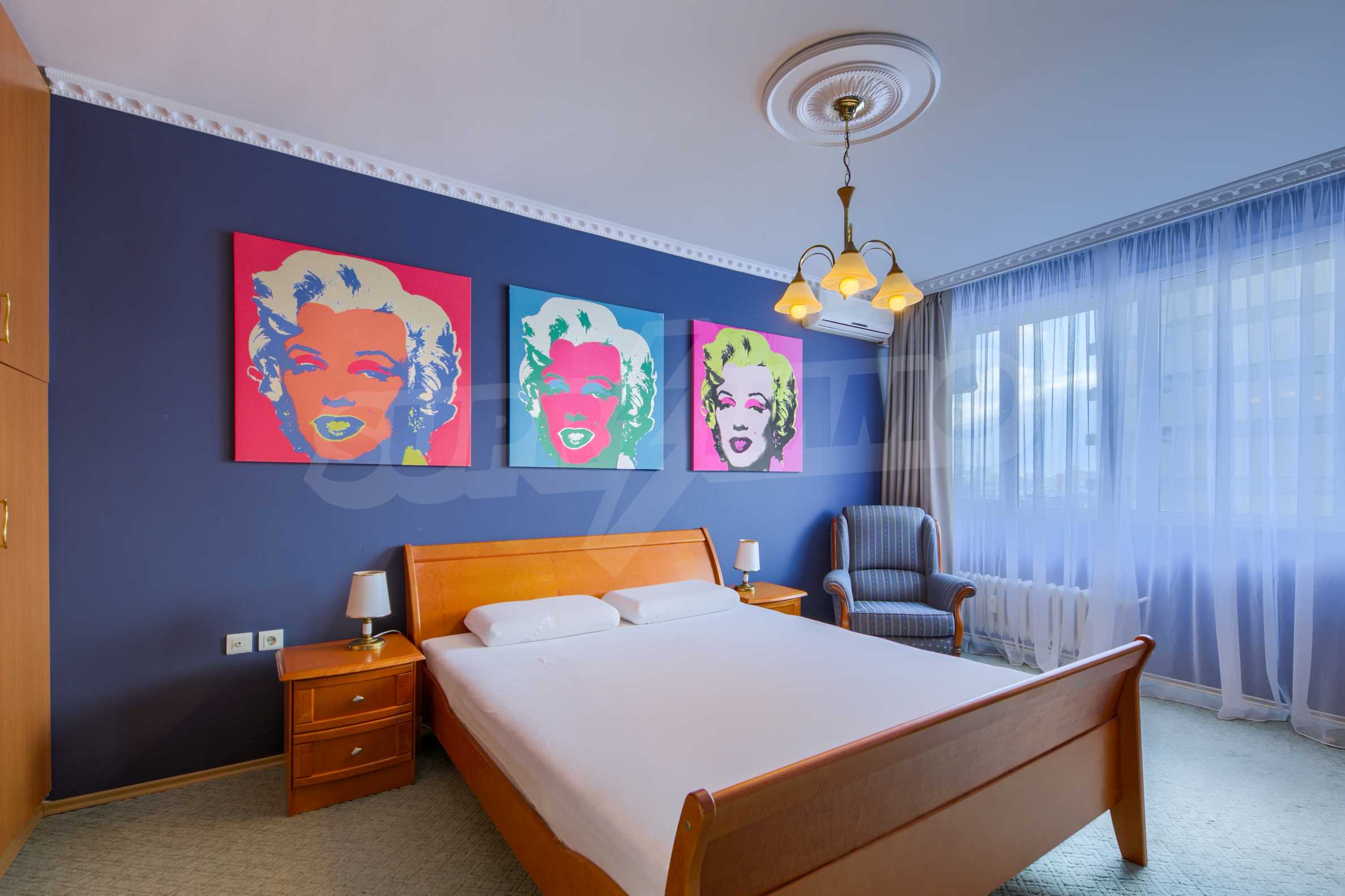 Имаме удоволствието да Ви представим артистичен тристаен апартамент под наем в елитният квартал Изток, намиращ се в дипломатическа сграда.
