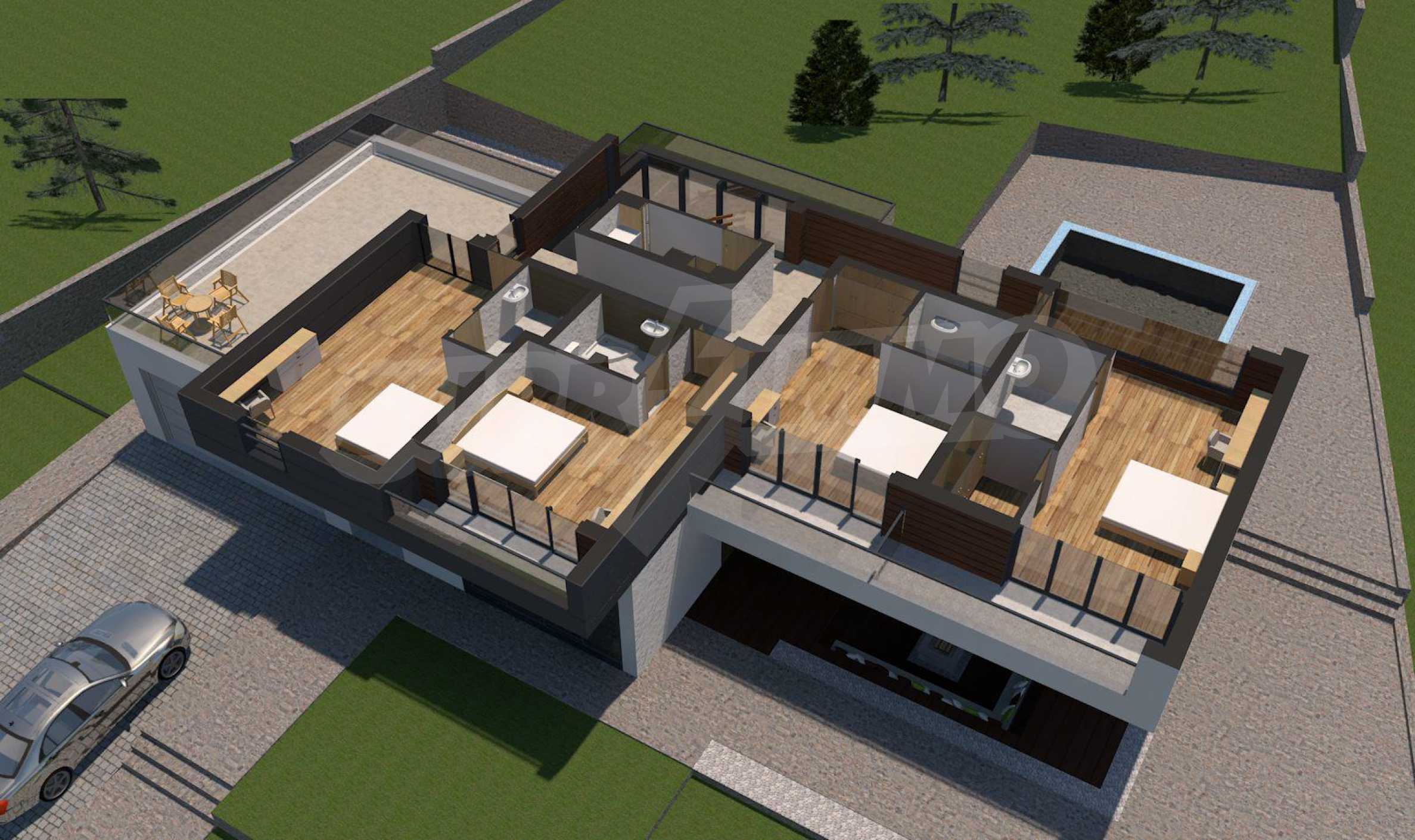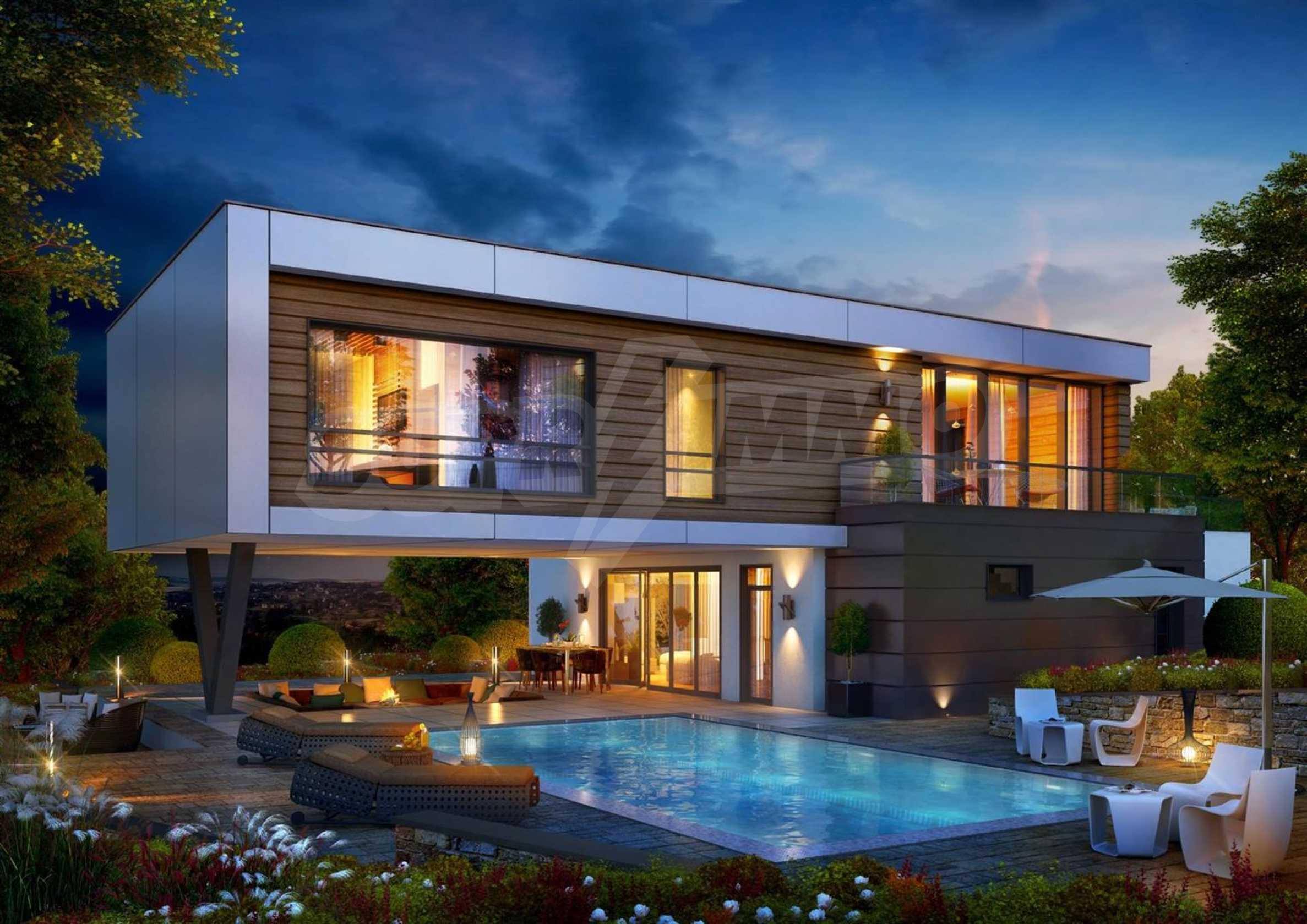 Ултрамодерна къща с басейн в елитен комплекс близо до Пловдив